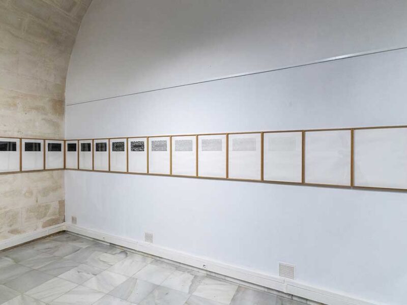 21 fotodibujos de cianotipia y grafito sobre papel cuadriculado