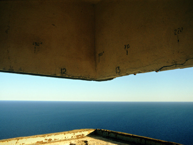 Me gustaría agradecer el cálido apoyo y colaboración de mi propia familia y amigos: José Luis, Pilar, Cristina, Josele, Blanca, Manolo, José, Héctor, Clara, Antonio, Juan Carlos, Andrés y Florita. También quiero agradecer el apoyo de la Concejalía de Cultura del Ayuntamiento de Cartagena: Jose Luis Cegarra, Fabiola y Pedro Hernández, y de todas las personas que trabajan allí, el apoyo prestado por Caja Madrid: Oliva María Rubio, Carmen Estrada LLaquet, Carlos Mª Martínez Martínez, Ruth Enríquez y Lola Baquero; El banco me otorgó una subvención en 2003 para desarrollar el proyecto. Gracias a Antonio Pérez, Miguel López, Jesús Carrascosa y a todas las personas que trabajan en la Fundación Española Antonio Pérez en Cuenca: de mayo a julio de 2003 tuve una exposición individual en este museo relacionada con este proyecto. Por último, pero no menos importante, The Photographer’s Gallery de Londres: Paul Wombell y Lisa Le Feuvre, que mostró tres imágenes de este proyecto en la galería desde agosto hasta octubre de 2004. En palabras de Lisa Le Feuvre, comisaria de la exposición: Esta mirada se repite en las imágenes de Rosell Meseguer que miran a través de las rendijas de los edificios de defensa a lo largo del puerto y la costa de Cartagena en la Península Española que se utilizaron por última vez en combate durante la Guerra Civil española, pero ahora están abandonados y aislados de los enlaces de transporte proporcionando una mirada panorámica. (Great, The Photographer’s Gallery, agosto – septiembre de 2004)