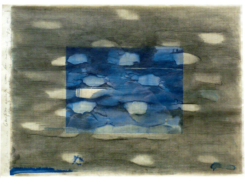 Cianotipia y grafito sobre papel cuadriculado
